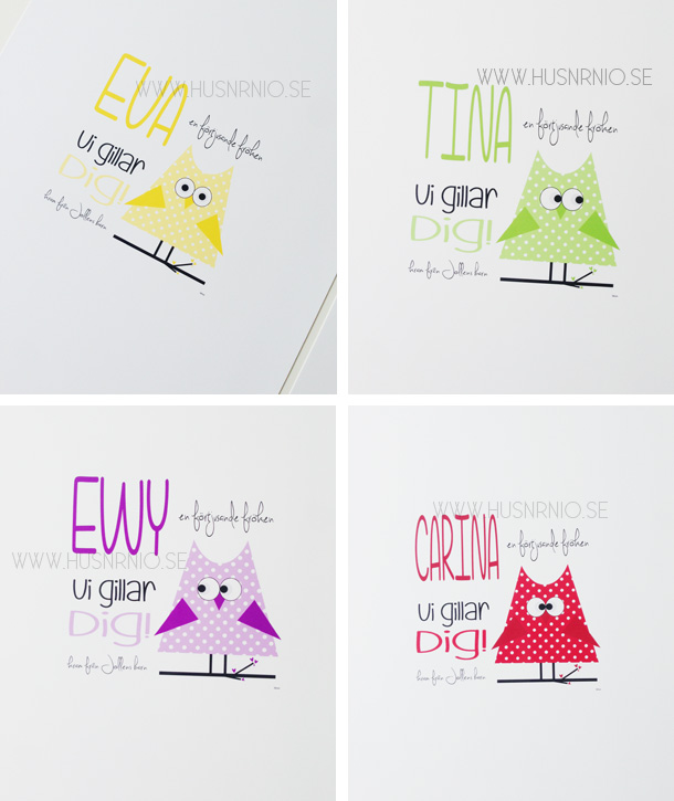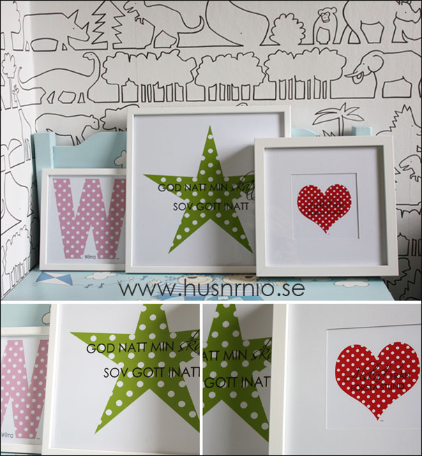 Sen en tid tillbaks gör jag, på beställning, personliga barntavlor, och även tavlor passande till andra platser i hemmet. Förslag på tavlorna hittar ni här på bloggen. HUSnrNIO.se innehåller allt detta i en enda röra kryddat med en massa foton då jag gärna dokumenterar vår vardag genom kameralinsen.