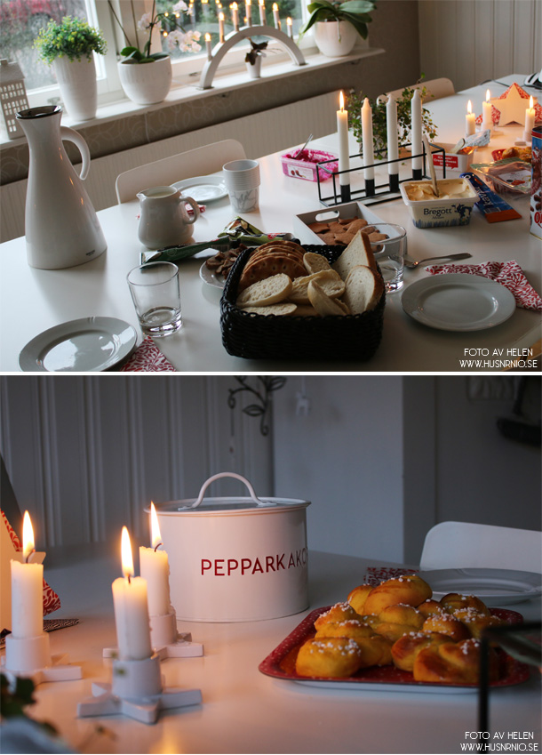 I år vill jag ha det än mer enkelt så smala ljus i Hubschljusstaken från Bluebox. Eventuellt dekorerar jag den med lite grönt från trädgården, kanske hänger jag på mina siffror. Får se hur det känns när jag gått förbi den tillräckligt många gånger, haha. Svårt att bestämma mig helt enkelt…