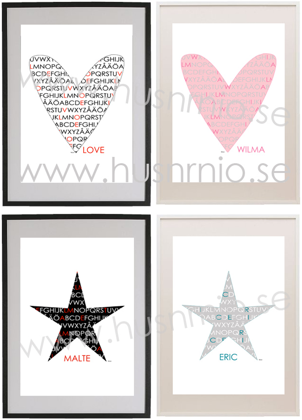 Sen en tid tillbaks gör jag, på beställning, personliga barntavlor, och även tavlor passande till andra platser i hemmet. Förslag på tavlorna hittar ni här på bloggen. HUSnrNIO.se innehåller allt detta i en enda röra kryddat med en massa foton då jag gärna dokumenterar vår vardag genom kameralinsen.