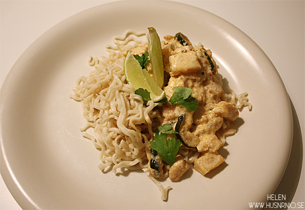 Det är även enkelt att göra som man får göra till mina barn – lägga undan en del av den stekta kycklingen då de inte alls gillar ”grytkonceptet” och servera kycklingen med de nykokta nudlarna och en skvätt matlagningsgrädde.