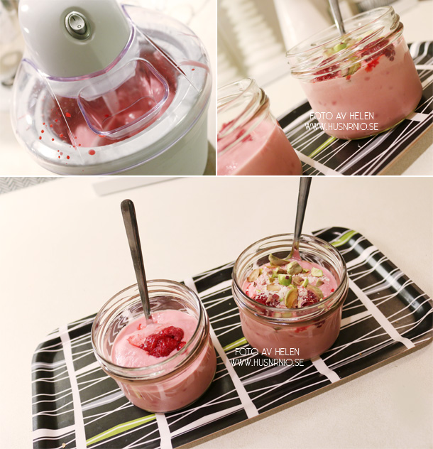 Till helgen ska jag prova att göra en vaniljvariant som kanske M vågar prova sig på att smaka och sen vore det nog underbart gott med jordgubbssmak…