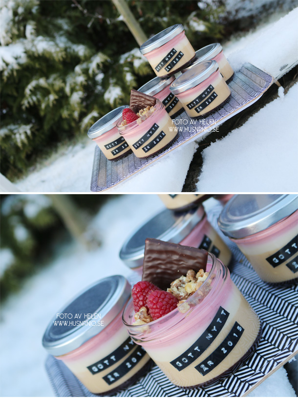 Desserten på nyårsafton blev en trippel pannacotta bestående av dulce de leche, vanilj- och vit choklad samt ett avslutande lager av krämig lite syrlig hallon.