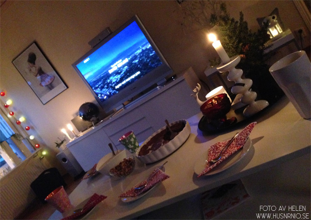 Vi har myst med leftovers i form av kladdkaka som barnen åt igår kväll, kaffe och karamelliserade valnötter, framför tvn och tittat på julfilm tillsammans.