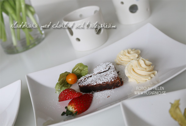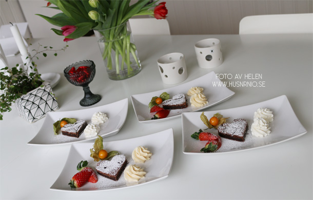 Kritiska lilla dessertkillen gav fikat full pott. Godaste kladdkakan ever, haha, och han berömde så klart upplägget direkt när han såg tallriken. Den killen vet hur man får en mamma att må gott på Alla hjärtans dag han 😉