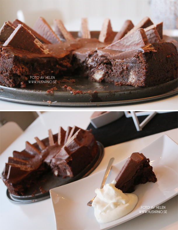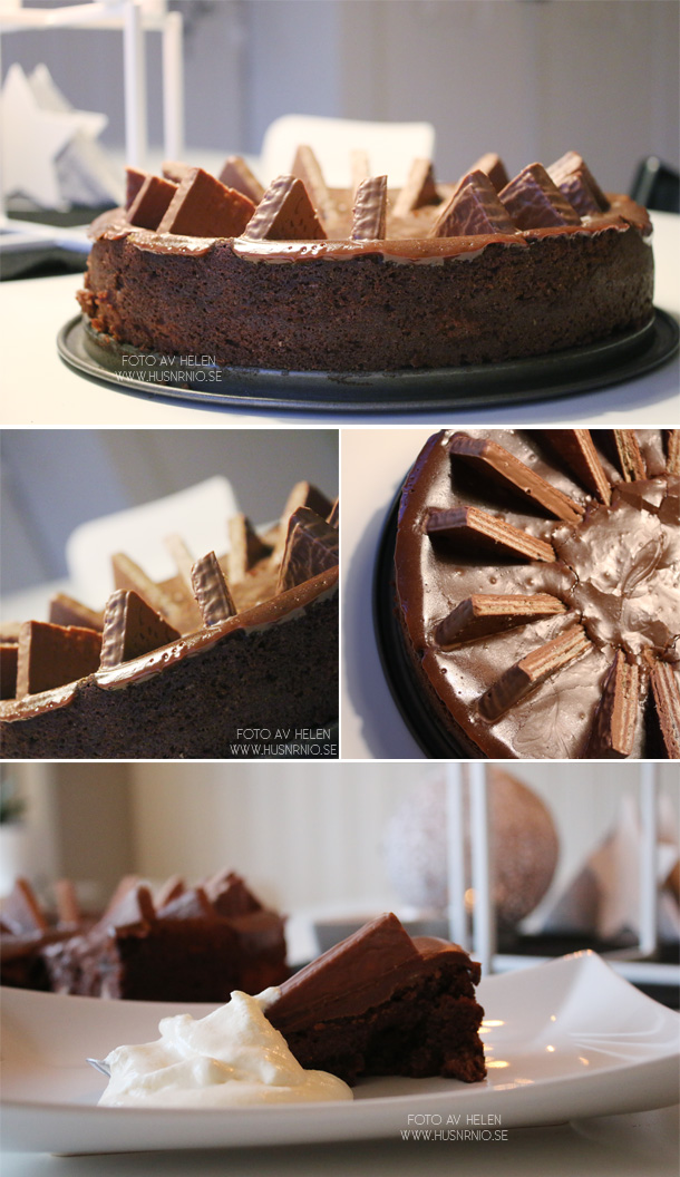 Kexchokladen i kakan var en chansning. Samma dag som jag bakade kakan och smakade på den var jag inte riktigt säker på om jag tyckte om bitarna av kexchoklad mitt i men dagen efter när kakan fått stå till sig under natten så hade bitarna mjuknat något tror jag och det var riktigt gott.