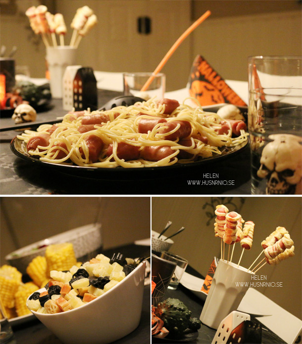 Att det kan vara så gott med pasta och kokt korv är förvånansvärt men att det ska finnas med på Halloweenbordet är givet.