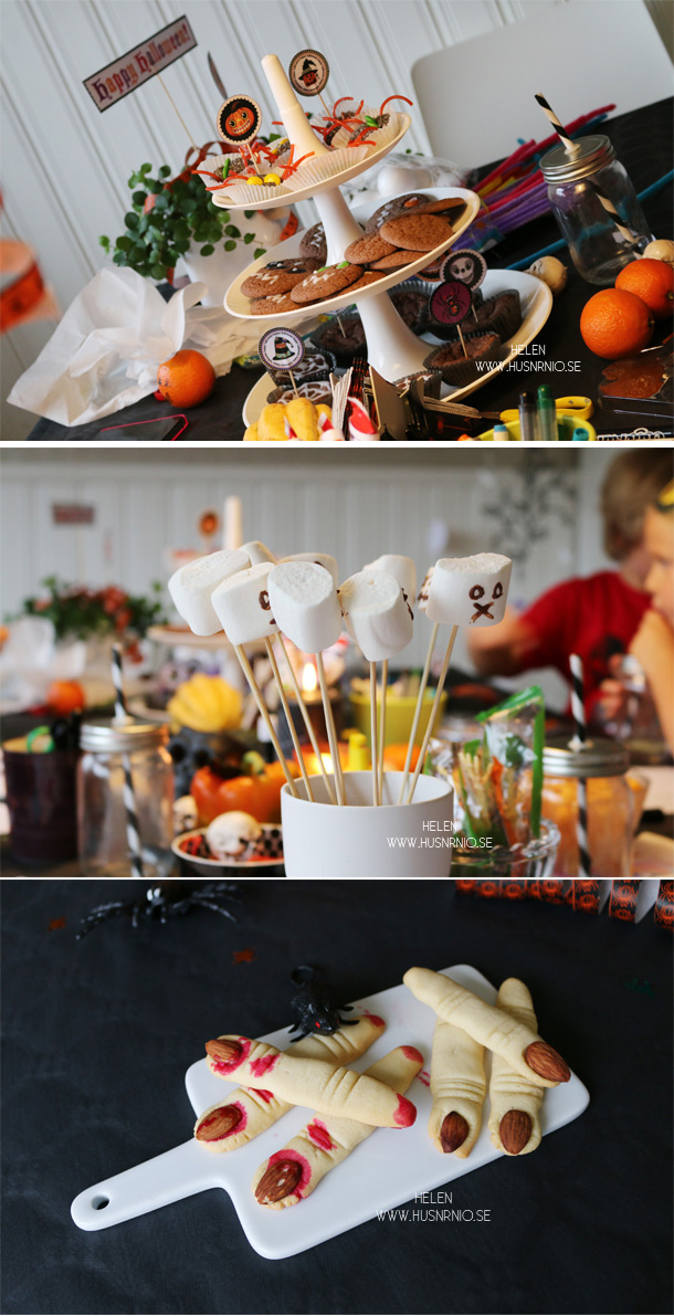Häromkvällen hade vi Halloweenmiddag. Barnen åt med god aptit så att de gillar den här sortens enkla temainspirerade mat är det ingen tvekan om.