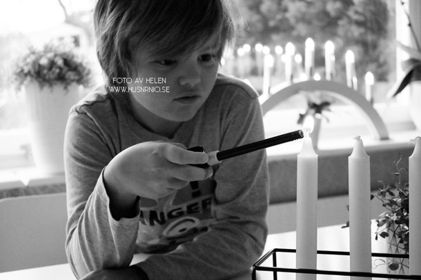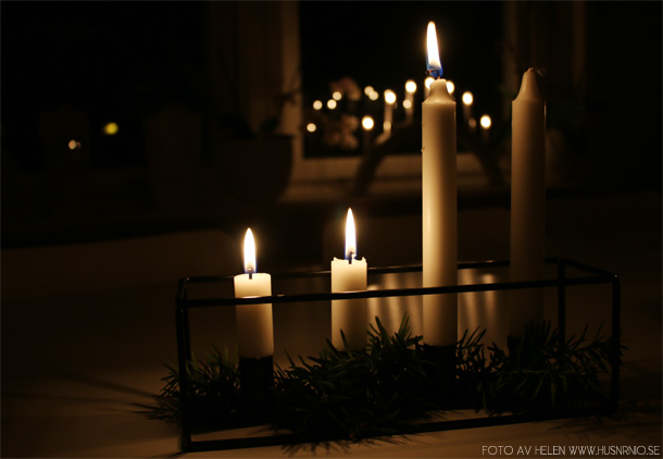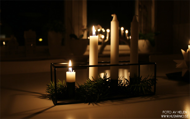 I år vill jag ha det än mer enkelt så smala ljus i Hubschljusstaken från Bluebox. Eventuellt dekorerar jag den med lite grönt från trädgården, kanske hänger jag på mina siffror. Får se hur det känns när jag gått förbi den tillräckligt många gånger, haha. Svårt att bestämma mig helt enkelt…