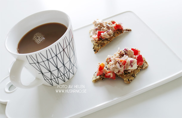 Glasburken på köksbänken är åter igen välfylld med nyttiga goda frökex och med en röra av tonfisk, finhackad rödlök, paprika, lite fetaost och kryddor är de försvinnande goda!
