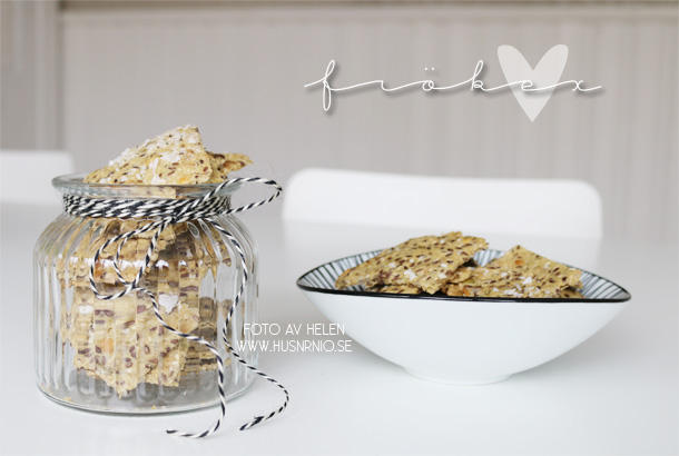 Receptet på frökex hittar ni här . De är lätta att baka, allra helst om man gör som jag gjorde igår och valde att bryta dem i bitar istället för att skära dem, det gick supersnabbt, och så är de superdupergoda! Nyttiga dessutom vilket ju aldrig är fel.