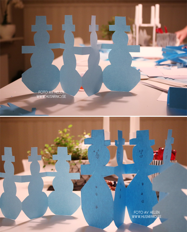 Vi provade också på att klippa snögubbar och julgranar på rad.