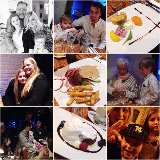 Alla redo at lämna huset igår kväll, M och storebror G, Löjromstoast till förrätt, W och storasyster E, huvudrätt, farmor K och M, huvudpersonen, chokladfondant och en groupie på vägen hem.