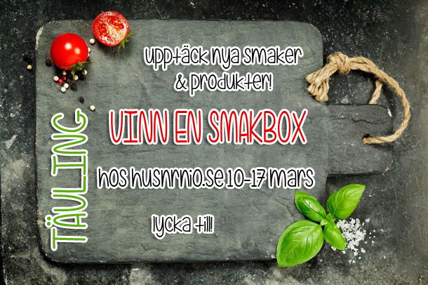 I mitten av mars lanseras den allra första Smakboxen och jag har nu fått möjligheten att i samarbete med Smakbox tävla ut ett exemplar av denna smakrika box till en av mina läsare.