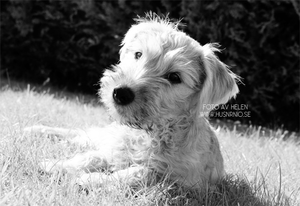 Jag tycker han är charmig med all päls men L tycker att det är mindre fint när ögonen blir alltför dolda av päls. En smaksak än så här länge då han bara är valp på hemmafronten just nu.