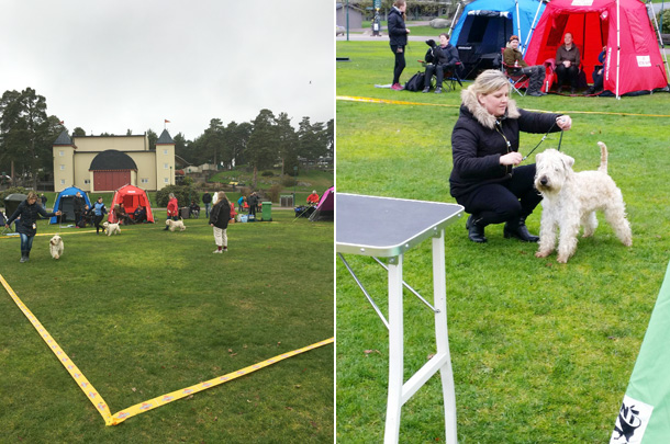 Idag har vi varit iväg på utställning i Mariebergsskogen. Premiär för 2016 och detta är året då vi ska försöka skaffa oss erfarenhet av att vara inne i ringen har jag satt som mål så att vi blir vana vid det båda två och vet hur vi ska bete oss, vilket varv man alltid springer, uppställningar, och få det att kännas naturligt och behagligt så kanske en del av det där nervösa pirret, i alla fall hos mig lägger sig.